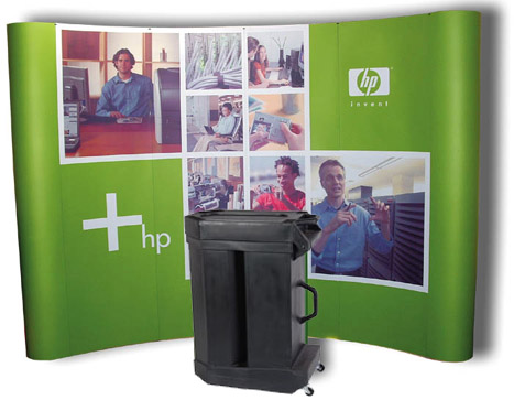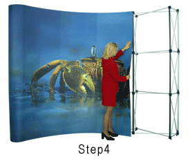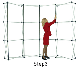 Banner walls consist of a lightweight frame which literally expand up to create a skeleton frame which then holds the graphic panels in place. Usually these panels are printed to create what looks like a continuous seamless graphic display.